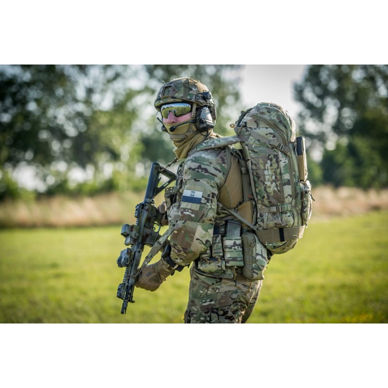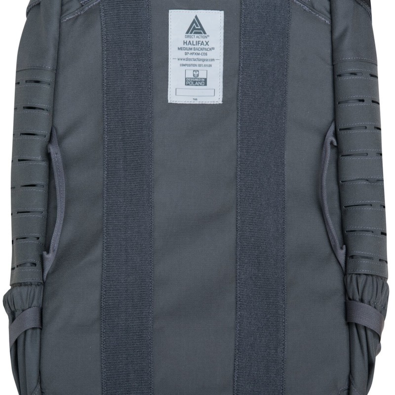 Direct Action Halifax is a fully mission-configurable 40l patrol pack. It features a large main compartment with YKK zippers and interior lined with velour fabric that allows mounting of additional pouches. The back of the interior panel is covered with laser cut MOLLE/PALS, to re-configure this pack for a medical pack, assault pack, breacher pack or even a radio pack with internal anchor points. The top part of the flap has two pockets, one of them lined with velour. The outer layer of the pack is covered with laser cut MOLLE/PALS. The pack has heavy duty shoulder straps and additional anchor points on bottom and sides, which along with reinforced construction make it usable for airborne operations. Zippers on the front allow mounting of Direct Action Spitfire back panels.