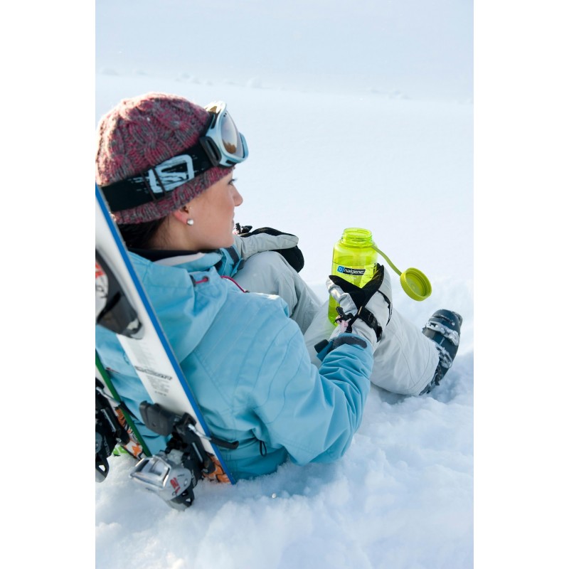 If you’re looking for a water bottle that will keep you well hydrated, hold up against bangs, bumps, and drops, and not leak a single drop ever, then the iconic 1 L wide mouth is your water bottle. There’s a reason why the design hasn't been changed in decades - it just works extremely well. Nalgene Self-glowing water bottle with large neck is manufactured from the BPA free Sustain Tritan Copolyester, recycled material that is utterly taste neutral. Absolutely proof, easy to clean and virtually indestructible. The bottle is perfect to find them in the night when you are thirsty and incidentally a nice, smart gift.