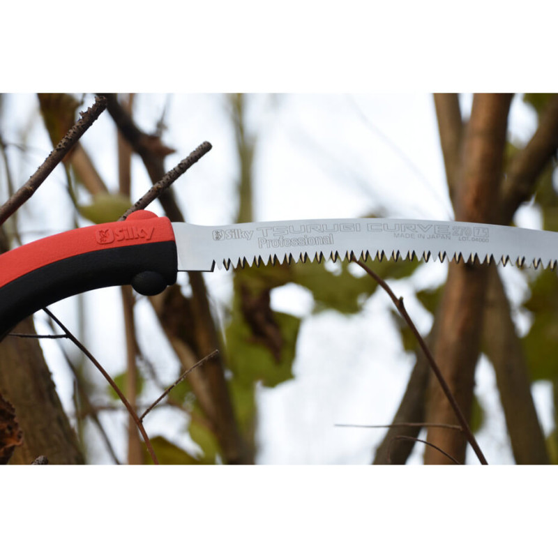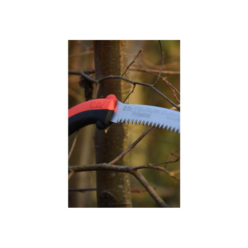 Silky Tsurugi 330-7.5 is an ultra-light, exceptionally sharp Japanese pruning saw designed for precise, efficient cutting of both hard and fresh wood. The 330 mm blade with 7.5 TPI ensures smooth, clean cuts without tearing the wood fibers. Its thin yet robust profile allows access to tight spaces and hard-to-reach branches, making it perfect for detailed interior cuts. The ergonomically designed, rubberized handle ensures excellent grip and comfort during prolonged use, reducing fatigue. Ideal for arborists, gardeners, forestry professionals and serious enthusiasts who demand top performance. A protective, lightweight sheath is included for safe transport and convenient storage. Experience unparalleled cutting precision with Silky Tsurugi.
