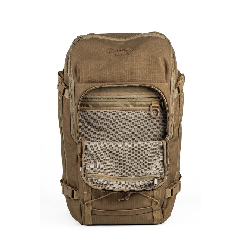 Serija Pugio predstavlja vrh ponudbe taktičnih dnevnih nahrbtnikov Berghaus. Oblazinjene stene in notranji okvir nahrbtnika Pugio 42 ustvarjajo čvrsto in funkcionalno zasnovo, ki ostane popolnoma odprta ob odpiranju z zadrgo. Notranje stene so opremljene z Velcro zankami za pritrditev modularnih torbic in učinkovito organizacijo opreme. Pas Pugio 2 se lahko pritrdi neposredno na notranje Velcro površine. Ergonomsko zasnovan nosilni sistem zagotavlja odlično prileganje in udobje, primerljivo z nošenjem lahke jakne.